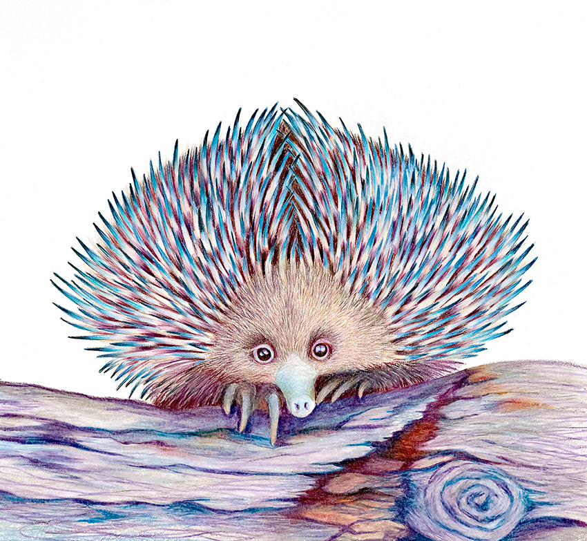 Echidnas and Platypus are the only living mammals that lay eggs and the only surviving Monotreme members . Adult echidnas vary in size, from 35 to 53cm. Males weigh about 6 kilograms and females about 4.5 kilograms. The echidna looks fearsome enough, but it’s a shy animal and would rather retreat than fight if disturbed. When frightened it will curl into a ball, with its snout and legs tucked beneath it and its sharp spines sticking out. It will wedge itself beneath rocks, or burrow straight down into soft soil, to escape predators such as dogs, eagles and dingos. Like the platypus, the male echidna has a hollow spur on its back leg. While a male platypus can use this spur to inject poision into would-be attackers, echidnas do not have this ability. Being monotremes, echidnas produce young from eggs which are hatched outside their body, in the same way as birds and most reptiles. She then rolls the egg into a small pouch where it takes about 10 days to hatch, producing a young animal which measures around 1.45cm (about the size of a jellybean) and weighs as little as 380 milligrams. The young echidna, called a puggle, is carried around in its mother’s pouch for about three months, during which the female will sometimes drop it into a burrow for protection. By the time the infant leaves the pouch, its spines have started to develop, but it still stays close to its mother and continues to suckle milk through specialised pores in the skin inside her pouch. Although they begin to eat termites and ants soon after leaving the pouch, young echidnas are often not fully weaned until they are several months old. Usually only one single egg is produced each year around July-August. Echidnas have been known to live for as long as 16 years in the wild, but generally their life span is thought to be under 10 years.