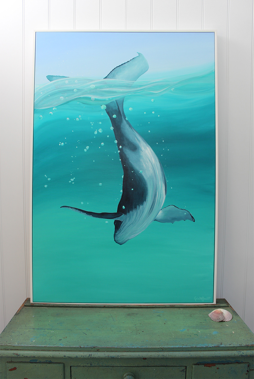 152 x 101 acrylic on canvas painting, framed in white timber box frame